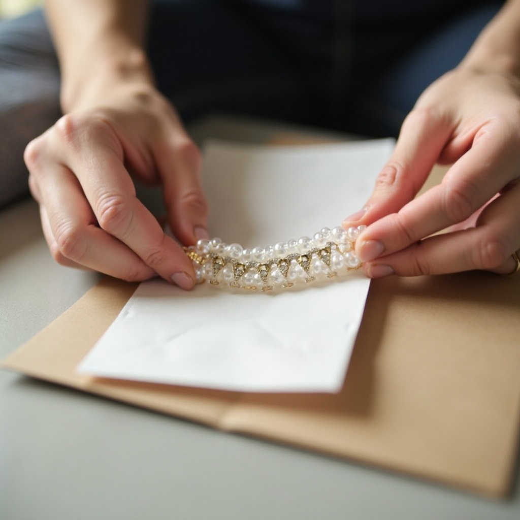 Auswahl der richtigen Größe und des Materials: Ein Umschlag sollte Ihr eingewickeltes Armband eng anpassen und gerade genug Platz lassen, um zusätzliche Polsterung einfügen zu können. Ein enger Sitz minimiert Bewegungen innerhalb der Verpackung und reduziert die Möglichkeit von Beschädigungen.