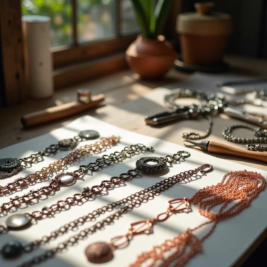 - Perlen integrieren: Fädeln Sie Perlen zwischen Kettengliedern für Farb- und Strukturvariationen auf, die Ihre Kunstfertigkeit hervorheben.